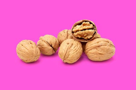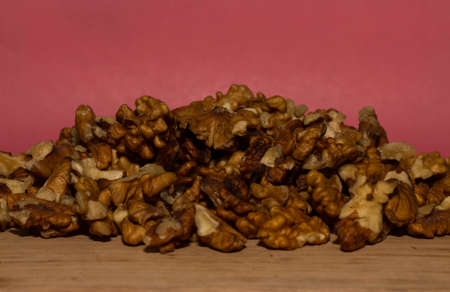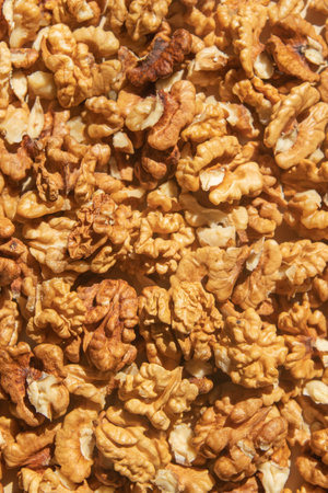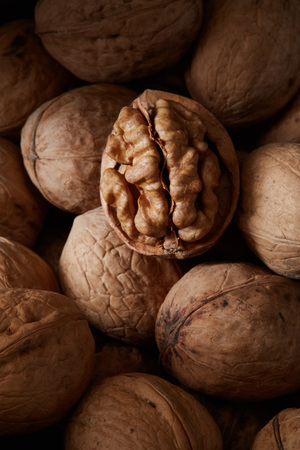 Walnut seeds, nuts backdrop for healthy nutrition.