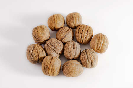 Raw Walnut Halfs, top view. Flat lay, overhead.
