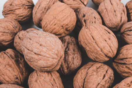 Walnut background. Close-up of walnuts. Whole walnuts.