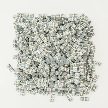ai generated illustration collection of money stacks of 100 US dollar banknotes that make up a large portion