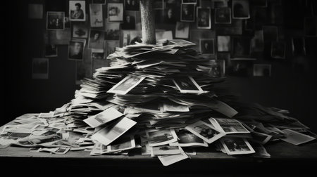 Generative AI : Closeup of a pile of vintage family photos