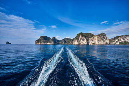 Exotic Andaman sea surface summer landscape with blue sky. Indian ocean, Thailand