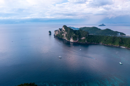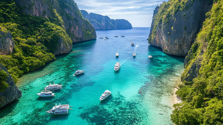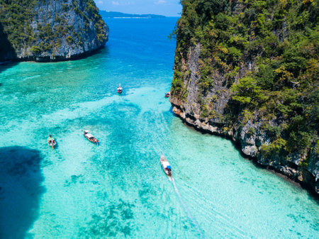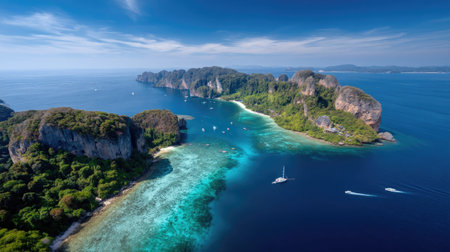 Generative AI : Aerial view of rock formation with high cliffs on Phi Phi island Thailand