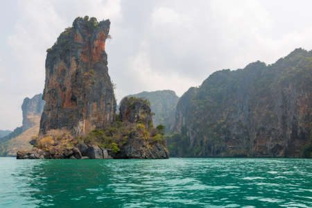 Beautiful outdoor view of Huge mountains in the middle of the sea on Poda island in a gorgeous sunny day and turquoise water