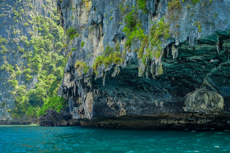 A detailed view of the green rocks in the Phi Phi Islands - one of the most famous places in Thailand