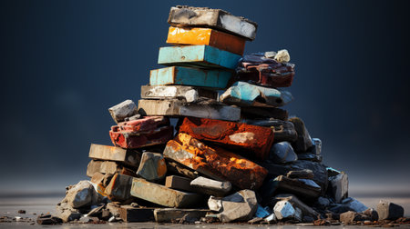 A striking image of a large pile of mixed garbage and waste against a vibrant solid color background, highlighting the critical issues of pollution and recycling challenges in modern society.