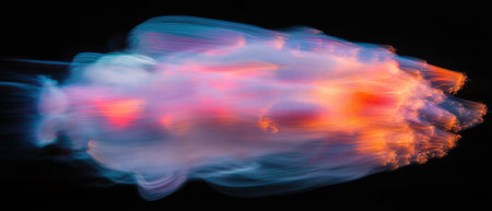 In this abstract photo the delicate movements of jellyfish are depicted through a defocused lens creating a serene and ethereal scene that is simply mesmerizing.