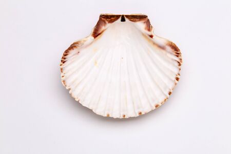 Pectinidae Scallop shell on a white background. Close-up.