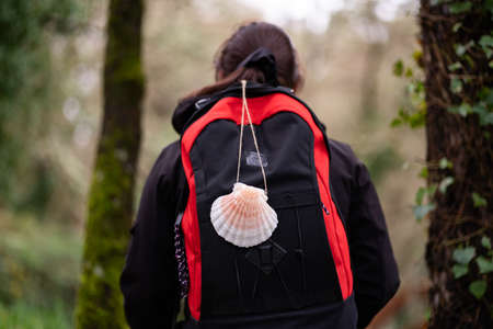 Symbols of the Camino de Santiago, backpack, scallop
