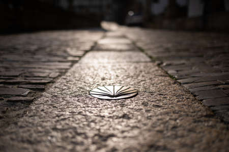 Saint James way shell golden metal on streets soil stone floor