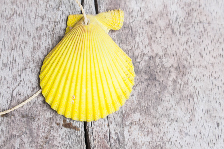 Yellow shell on a wooden floor.