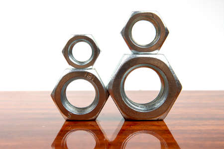 metal nuts for Industrial products on silver background