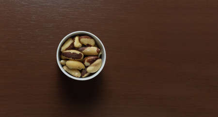 Brazilian nuts in a bowl on a wooden table.