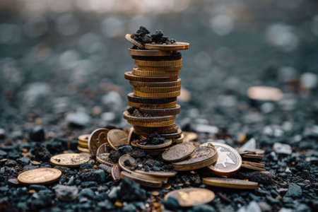 20251228 showing increasing stacks of gold and silver coins arranged in a bar graph formation on a dark surface...