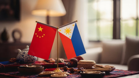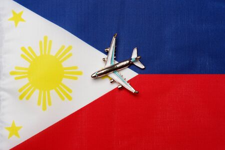 Plane over the flag of the Philippines the concept of travel and tourism. Toy plane on a flag in the background.