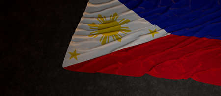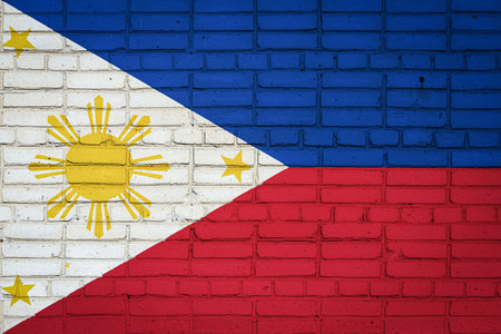 National flag of Philippines depicting in paint colors on an old brick wall. Flag banner on brick wall background.