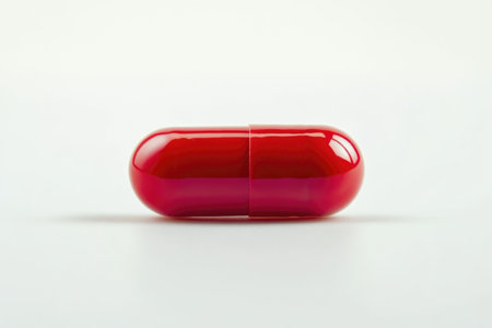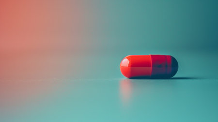 A minimalist image of a single red pill on a soft gradient background, symbolizing medication, healthcare, and simplicity.