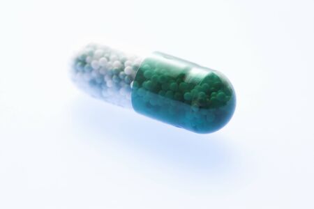 Medicine, White and Blue Granulated Capsules, Isometric