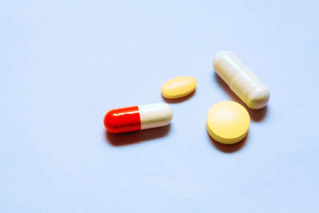 Assorted pharmaceutical medicine pills, tablets and capsules.Pills background.