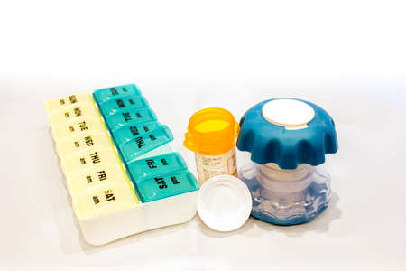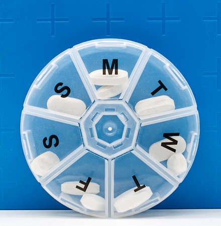 Close up of daily pill box. Drug Organizer