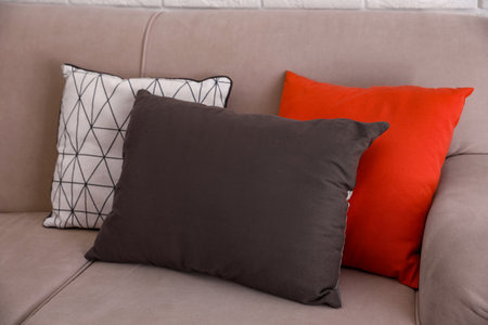 cozy stylish and soft home sofa with three pillows. you can stay at home to relax and have a good time
