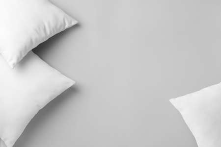 Vantage and modern decor styles for bedding and cushions on pastel background with copy space