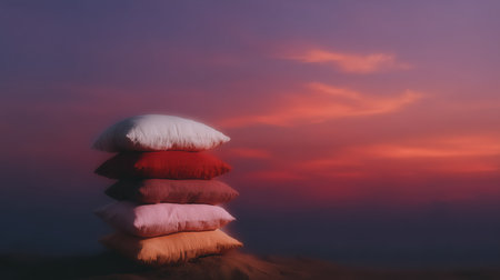 Soft pillows on the field, Pillow pyramid, good deep sleep, insomnia, sleep problems. High quality