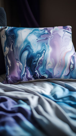 A serene arrangement of stylish decorative pillows on a soft bedspread highlights the cozy atmosphere of a modern bedroom, illuminated by natural light.
