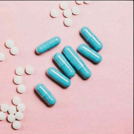 medical pills on blue background