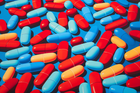 pharmaceuticals antibiotics pills medicine colorful antibacterials pills on blue background