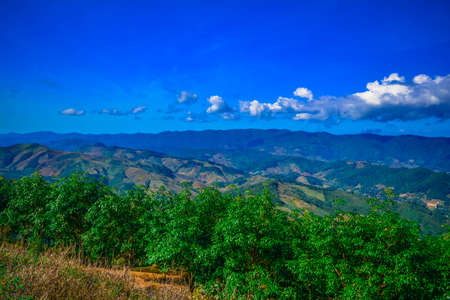 Beautiful mountain landscape of Doi Chang hill in Chiang Rai province, Thailand