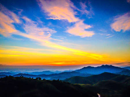 High view panorama beautiful nature landscape of the colorful sky cloud and mountain during the sunrise at Khao Kho, Phetchabun.