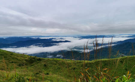 Fog over the mountain, Sunset Panorama View from Doi Inthanon, National Park in Chiang Mai, Thailand the highest peak of Thailand