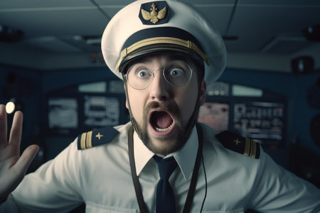 Pensive Shocked aviation pilot. Wow fear. Generate AI