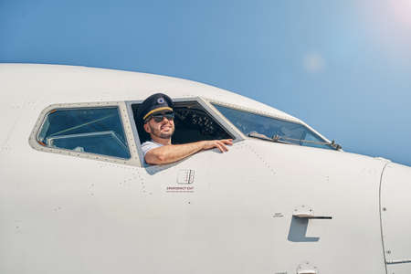 Captain looking out the window in the plane