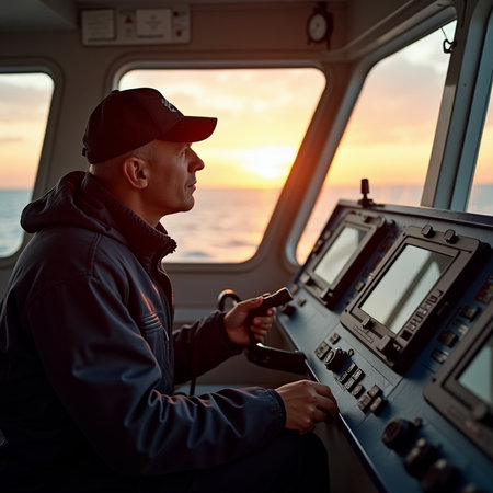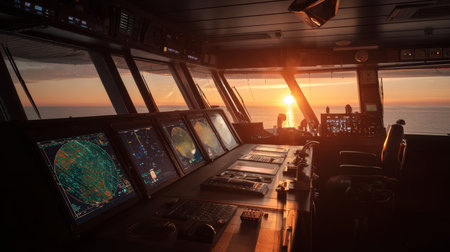 Ship bridge navigation control sunset ocean technology radar equipment maritime