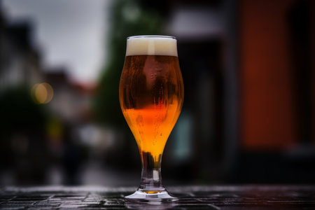 A glass of beer on a light background with selective focus by generative AI