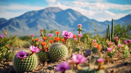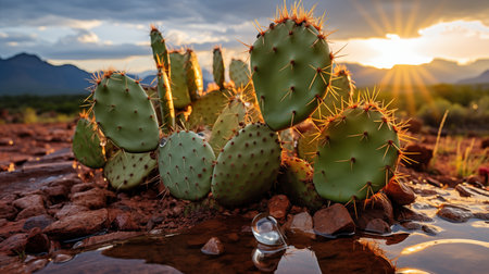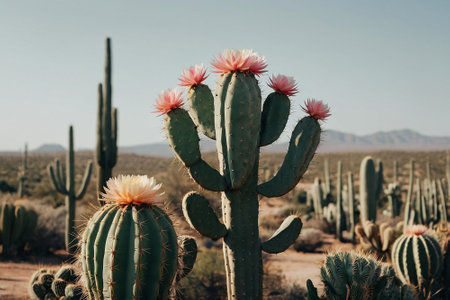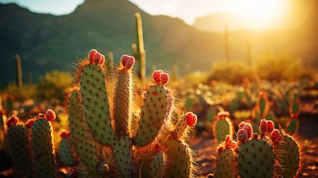 Frontier Flourish: Cacti Stand Tall, Reflecting the Arizonan Wilderness. AI-generated