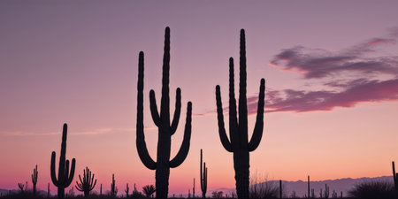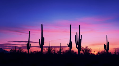 AI Generated. Serene Desert Sunset With Majestic Cacti Silhouettes