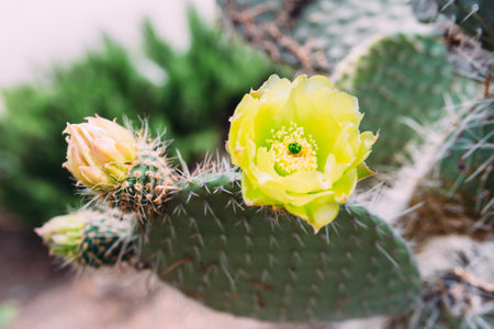 Cactus flower blooming in the botanical garden of Gran Canaria