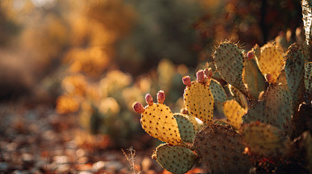 The prickly pear in fall, warm amber light, crisp air, shallow depth of field, soft natural bokeh, true-to-life color, minimal styling