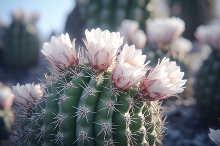 Blossoming Beauties: Captivating Cactus Flowers Through Selective Focus --ar 3:2