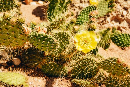 Cactus with flowers in Joshua Tree National Park, California, USA