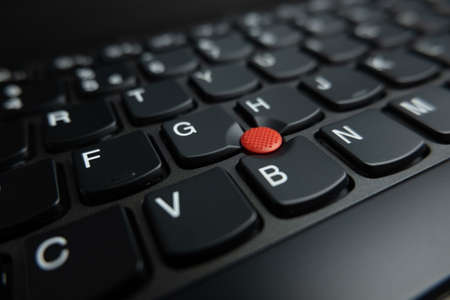 Lenovo Thinkpad notebook computer. Close up of trackpoint pointing device. Shallow depth of field.