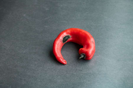 Spoiled red chili pepper. Ugly food trend, Flat lay and copy space.