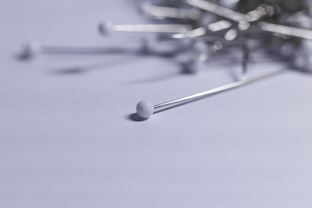 Close-up of a pin on a surface, with ample copy space available, showcasing detail and sharpness