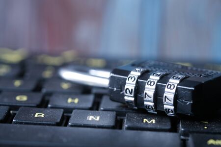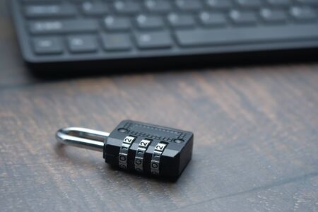 close up of padlock and keyboard on table