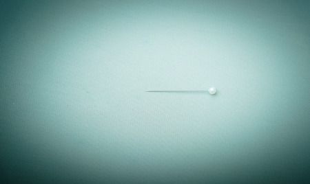 Top view of a pin on a surface, with ample copy space surrounding, sharp and focused