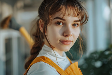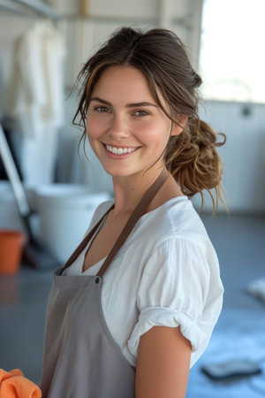 Dedicated And Successful Young Woman Thriving In Her Cleaning Career. Сoncept Cleaning Expertise, Professionalism, Career Success, Dedicated Work Ethic, Young Woman Empowerment.