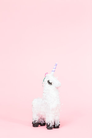 Small unicorn pinata for kids birthday party.